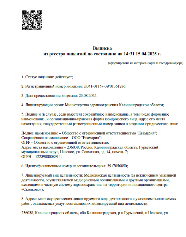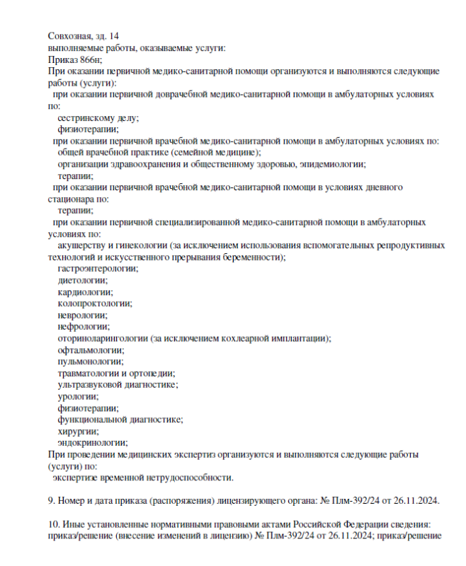 Лицензия на оказание услуг (оборот) ул. Совхозная, 14
